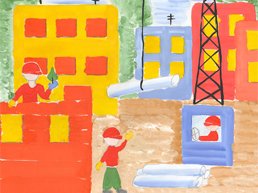 В конкурсе участвовали дети сотрудников компаний строительной сферы в Северной столице. Тема работы - благодарность строителям за работу, значимость всей строительной отрасли, размышления о будущем облике родного города.